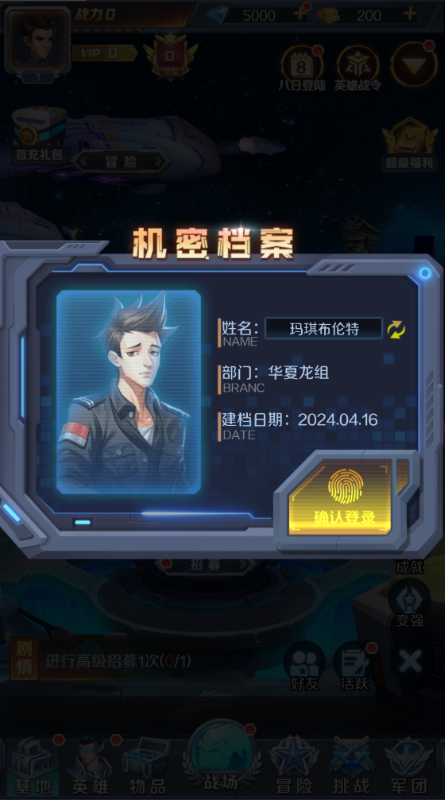 1、招募:招募分为高级招募、普通招募、友情招募,当高级招募到一定次数,可时空裂痕抽取最强英雄