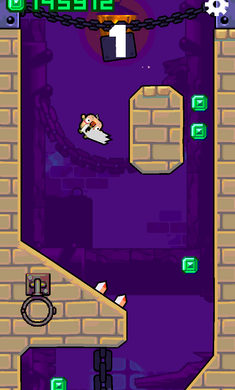 该作的风格比较像之前上架的《闰日》,场景均为竖直风格。游戏内玩家将扮演一位长胡子老汉,由于年龄的缘故,无法控制好自己老迈的身体,而当他从一个地牢内下落后,玩家们需要利用十分软弹的地牢墙壁,帮助这位老人逃脱。如诸位所见游戏画面内有着许多的粉色尖刺,若老人被它们刺到则会扑街。所以利用墙壁的弹性,躲避开这些尖刺,另外还可以收集绿色的小水晶,以获得更多奖励。
