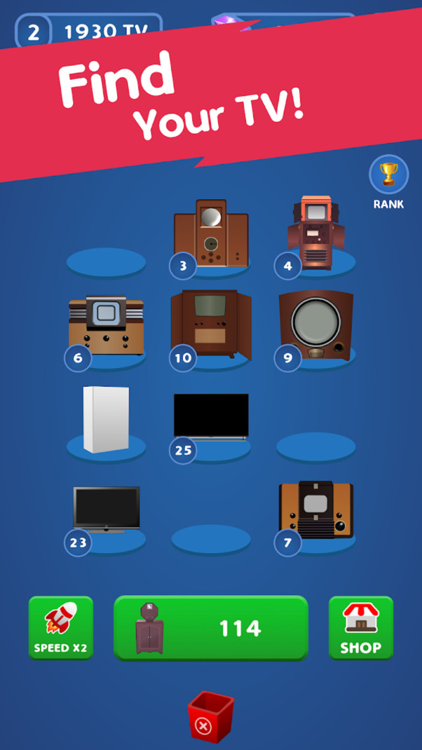 好吧,准备合并,在这个闲置的游戏中享受无尽的娱乐! 从一台旧电视开始。然后结合,混合和匹配您的电视,以将它们升级到最新的! 通过在存储中使用更先进的等离子电视和液晶电视来赚到钱。 收集硬币以购买更多种电视盒。 播放合并电视,立即开始您的休闲冒险。