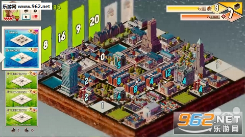 在游戏中,玩家有一副可以用来放置建筑物的卡牌,每个建筑都会以不同的方式影响到周围的环境。游戏的目的则是通过手机居民点数来清除城市街区,让更多的空间用于建造。随着城市的发展越来越大,更高更高的建筑将被建造。