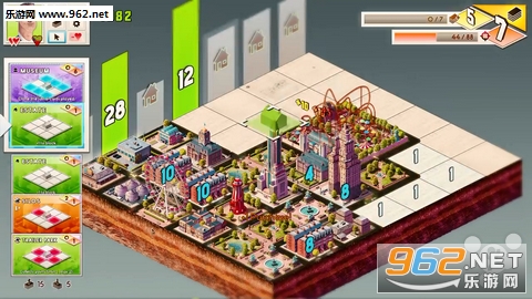 游戏中玩家将作为一个城市的市长,玩家需要通过好的规划让城市可以更加生机勃勃,要知道城市规划可是一个非常复杂的事情。在游戏中建筑物都会以卡牌的形式出现在屏幕的左侧,当玩家拖动之后就可以将相关的卡牌放置到自己的城市中,这些建筑物被放置进城市之后将会对整个城市产生巨大的影响,不同的建筑物的作用都是不同的,如何能够获得更大的利益就要靠玩家的技术了。