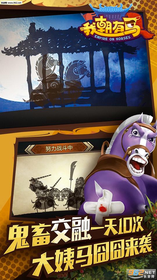 《我朝有马》是网易首款骑战3D卡牌手游。游戏摒弃了当前手游界中最火热的废萌风,在优化传统卡通风格的同时,加入了时下流行搞怪动漫设计,从而形成出搞怪趣味的“贱囧”风格。这是一款历史武将大乱斗为题材的游戏,游戏中武将和马匹双线成长,多种培养模式,更有创新的鬼畜交融系统,风格贱囧恶搞。