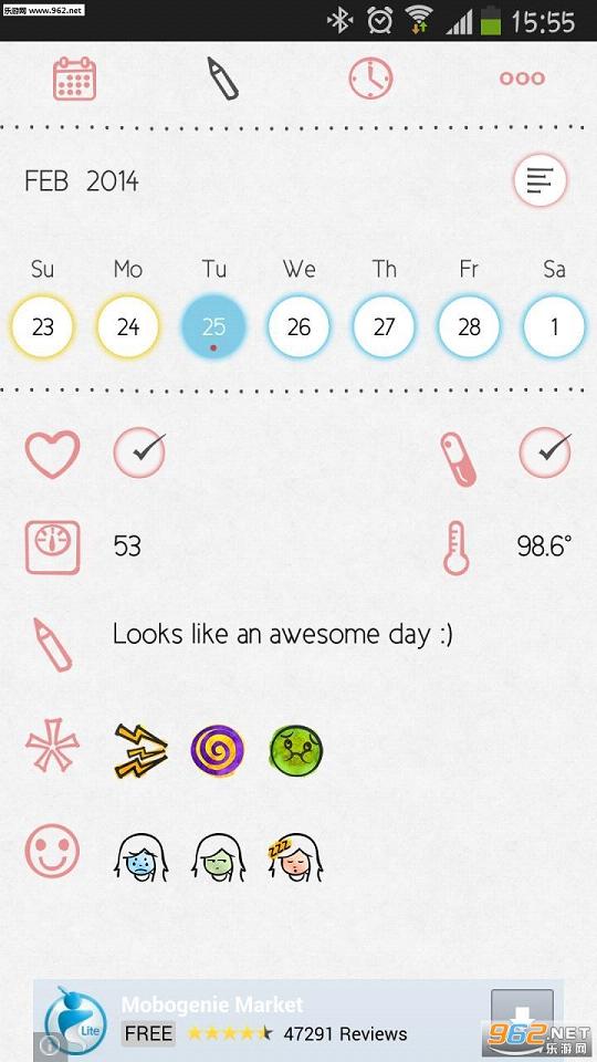 非常不错的一款生理周期管理软件,可以一键查询自己的例假时间等,女孩子们可以下载试试。