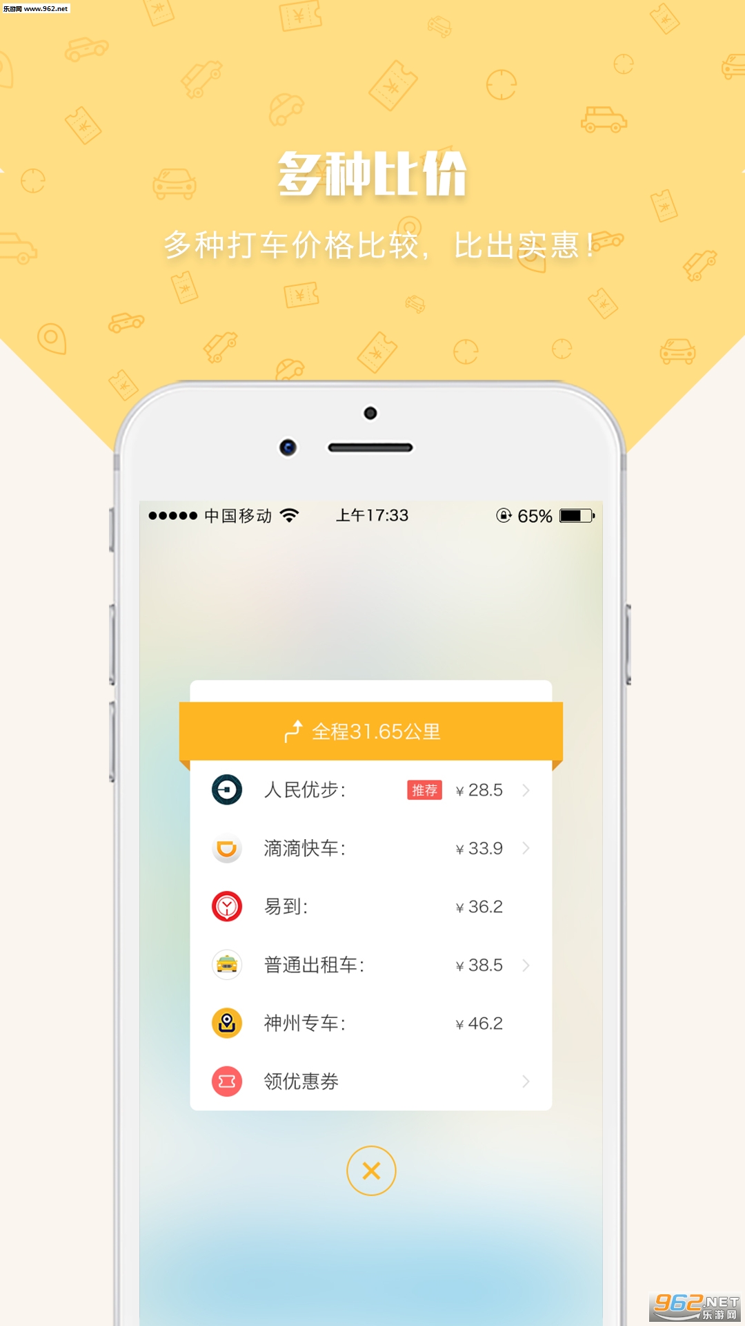 通过实时的对比滴滴打车、Uber打车、易到,以及普通出租车和其他网约车软件的价格,计算出最优惠的价格推荐,让您的选择出现方式更加实惠!