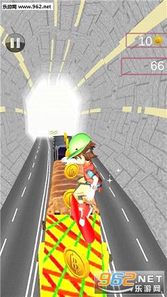 如果有玩过平常的跑酷类游戏的玩家,我相信会很容易上手,点击屏幕进入游戏,选择人物(在游戏里可以得到金币用来解锁各种酷炫的人物),我们一开始选择默认人物一个穿着绿色衣服的小伙,正式开始游戏其实没有相信的容易,操作是左右晃动手机在控制人物左右移动,手指往屏幕往上划就是跳,往下滑就是滑行,看上去是很简单,可在整个跑道上感觉一开始的障碍物就显得的特别的多,觉得措手不及,很容易就让绿色小伙四脚朝天,好在可以用游戏里得到的金币无限复活,随着滑出的距离,速度也越来越快,跑酷类游戏的爽快感渐渐的体现出来,还有点小道具丰富了游戏的可玩性。整体来说操作不难,可游戏本身的难度还是有的,需要多加练习。