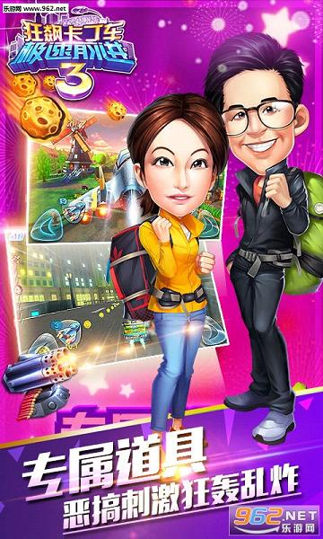 本游戏为深圳卫视大型真人秀节目《极速前进3》授权游戏,拥有全新的赛车改装技能和道具强化玩法,有可怕的飓风、陨石、狂雷,刺激的战机、飞弹、风火轮,还有充满恶搞的弹幕攻击。