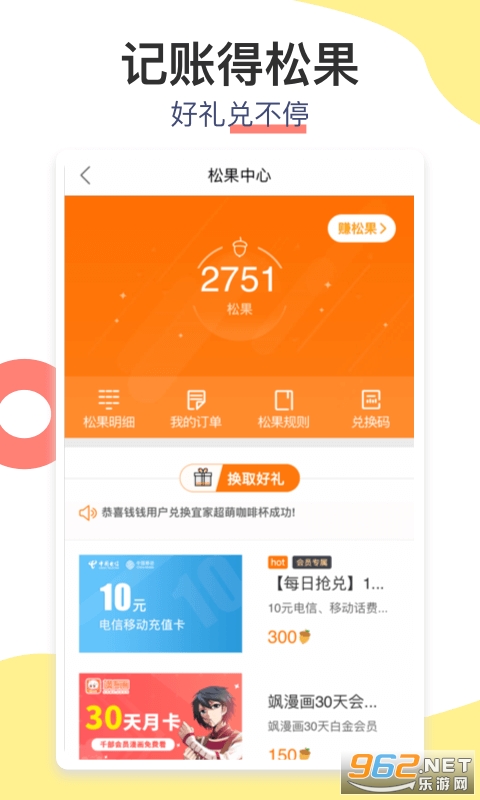 3,记账获取松果方式增加