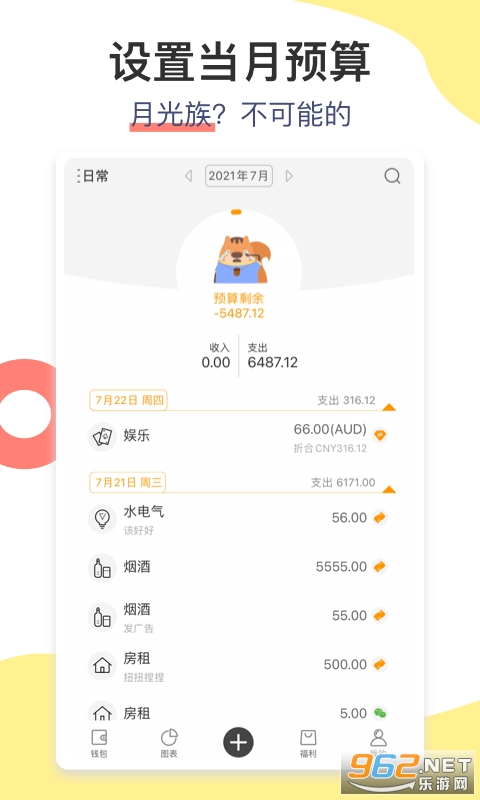 他不担心你是月光族,因为有了他,轻松设置每月预算,money不再乱跑,是你忠实的记账管家;