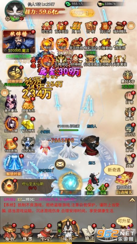 昊天塔:爬塔获得经验,仙纹、仙纹晶髓,爬塔越高每天领取的仙纹晶髓越多。同时每挑战10层有一次转盘机会,可以获得幸运转盘中的奖励。