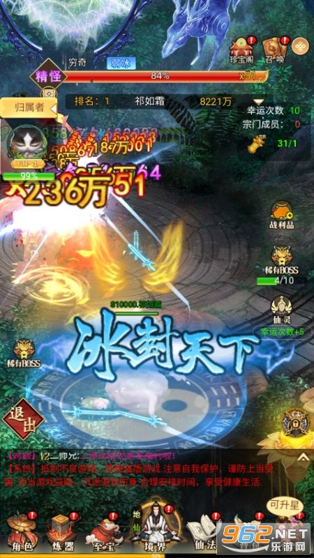 BOSS系统:这个玩游戏的大家都是明白的,就是杀BOSS爆装备材料什么的,这个没什么好说的,但是主要介绍一下野外BOSS是可以PK的,这个只要参与击杀BOSS就可以获得奖励,只有第一奖励是最好的,秘境BOSS只有归属玩家才可以获得奖励,BOSS之家只有VIP2以上玩家可以打,每2个小时刷新一次。