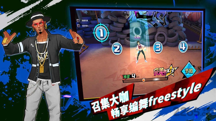 精美的人物与场景,配合庞大的音乐曲库、绚丽的灯光渲染和各种特殊效果,给你带来极具冲击力的豪华视听享受,一般音舞游戏做不到,在热血街舞团里统统能满足!