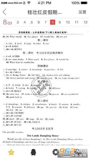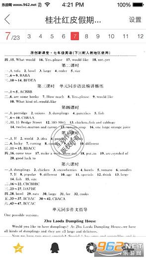 [寒暑假作业答案集]寒暑假作业后面被撕下来的答案都在这里。