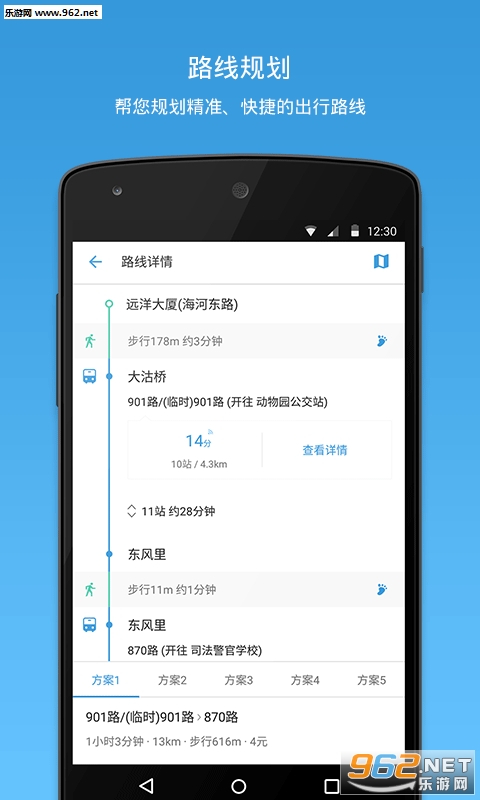 ②功能全面:周边线路地图导航,附近公交距离多远、还有几站到一目了然;输入起点和终点,智能筛选出多种换乘方案,提供详细的可行性线路和公交站牌信息。