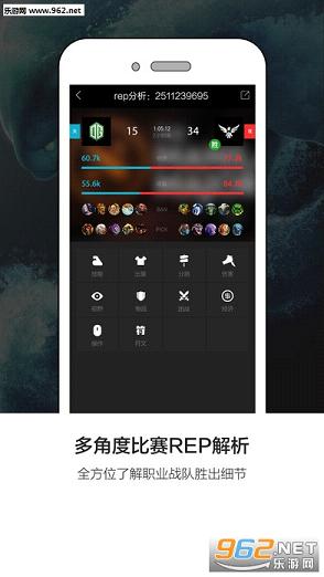 比赛数据 -- 赛前战队数据对比,赛中实时数据直播,赛后多角度Rep分析;
