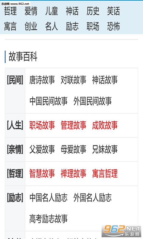 包含二十多个故事分类,包括童话故事、寓言故事、格林童话、一千零一夜 等等...