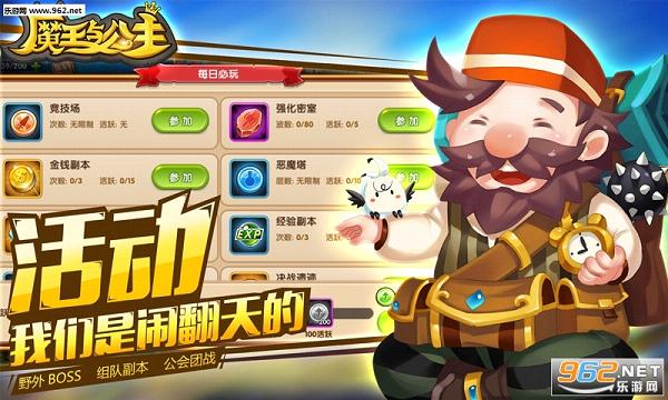游戏拥有强大的实时互动系统,语音聊天让你千里传音,心意秒达,战斗指挥更加及时迅捷。多人无时差大乱斗,带来如竞技类游戏的紧张刺激。5人组队副本,共同迎战野外BOSS。50人公会混战,考验你的极致操作和团队意识,秀走位、秀微操,让霸气的你不在“秀”手旁观!真人社交,实时互动,这就是《魔王与公主》的独特魅力!