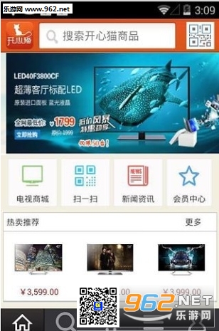 【更新内容】 1、电视商城2、二维码扫描3、产品搜索4、产品分类 5、会员中心