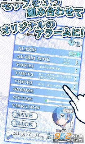 3、从已购买玩家的体验来看,就是很单纯的一个闹钟App,语音选择很多足够你配搭出不同“风味”的对白组合,当达到闹钟设定时间之后雷姆会不停重复你设定好的台词组合,不过由于系统限制,在静音以及震动模式下无法正常发声。