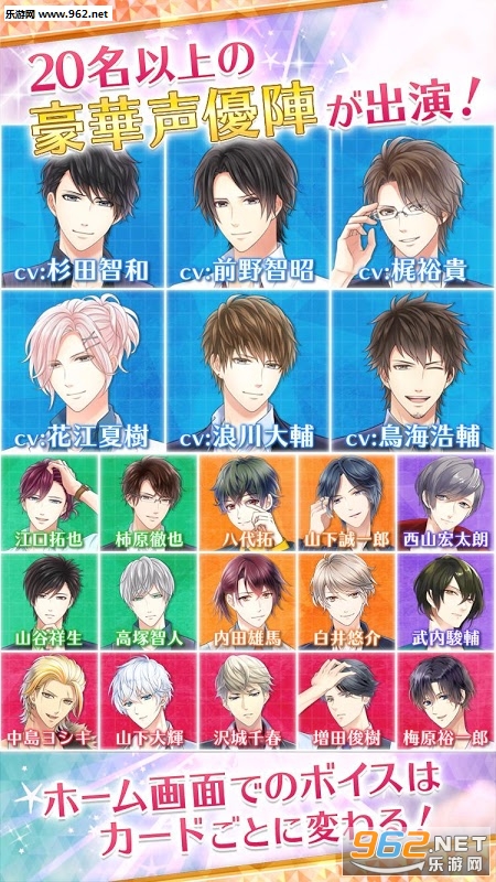 游戏内能够入手到的100张以上角色卡牌,都附有全语音的剧情故事。玩家能够尽情享受到和喜欢的角色的友情以及恋爱故事。除了剧情模式以外,还会有消除游戏模式。玩家可以选择喜欢的角色来进行组队,让他们在游戏中得到活跃!