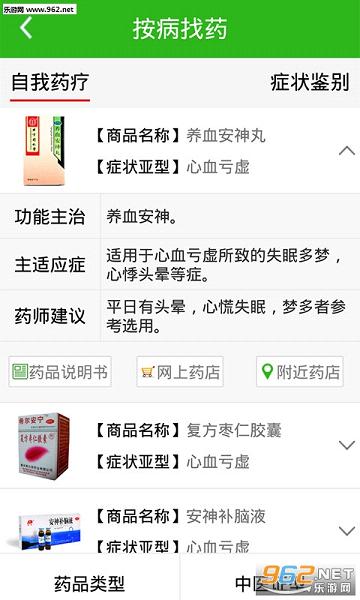 临床专家经验总结,点选症状自动匹配适合药品(中成药、西药),还可根据匹配结果查看说明书、药品价格及周边药店,实用价值★★★★★。