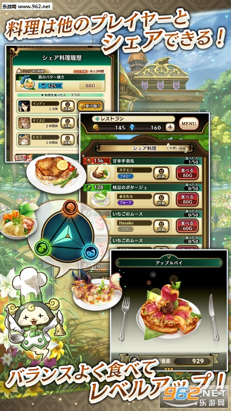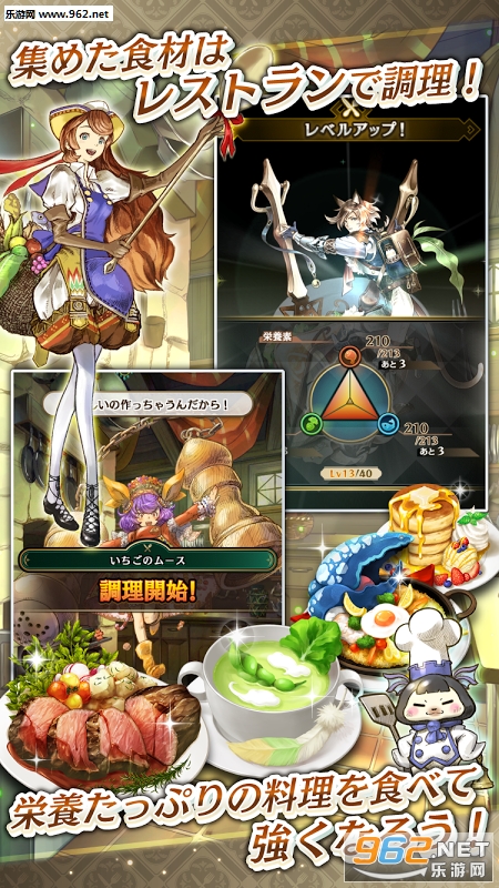 游戏中玩家在打倒在迷宫探索遭遇的敌人之后,将会入手各种稀有的食材!将食材送回饭店烹饪成可口的料理,将会提升冒险料理家获得各种成长!从OP动画来看,本作的质量还算是可以的,喜欢异世界料理系游戏的玩家和吃货们可以关注一下!