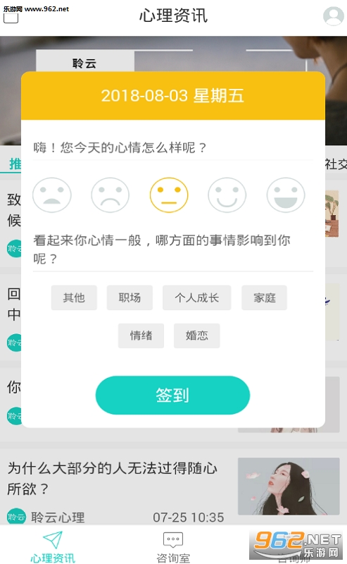 《聆云心理》是一款教你如何谈恋爱处关系的情商培养,心理健康平衡的软件。个人隐私安全保护,心理资讯全面保护,专业的心理咨询师,在这里解梦,在这里寻求心理帮助,需要就来下载吧!