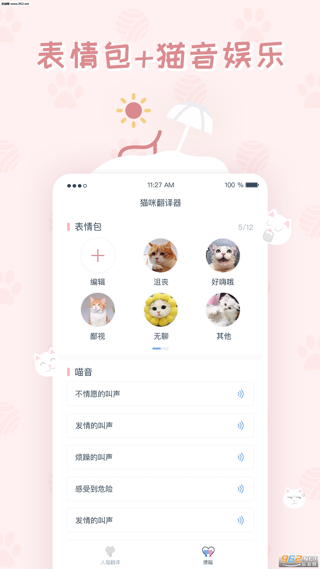 配备猫咪的喵星人语言,比如:委屈、开心、无语、呜咽、去打针、愤怒、发狠等多种有趣的猫叫声,帮您了解猫猫的常用语言,才能了解了它的心情哦!