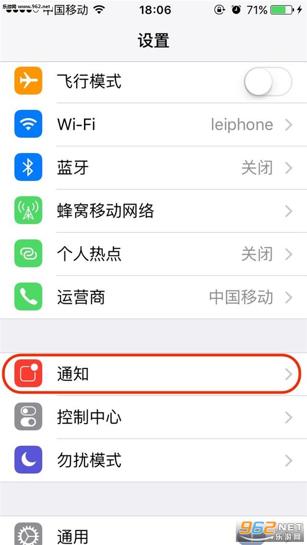 打开设置后,点击通知。