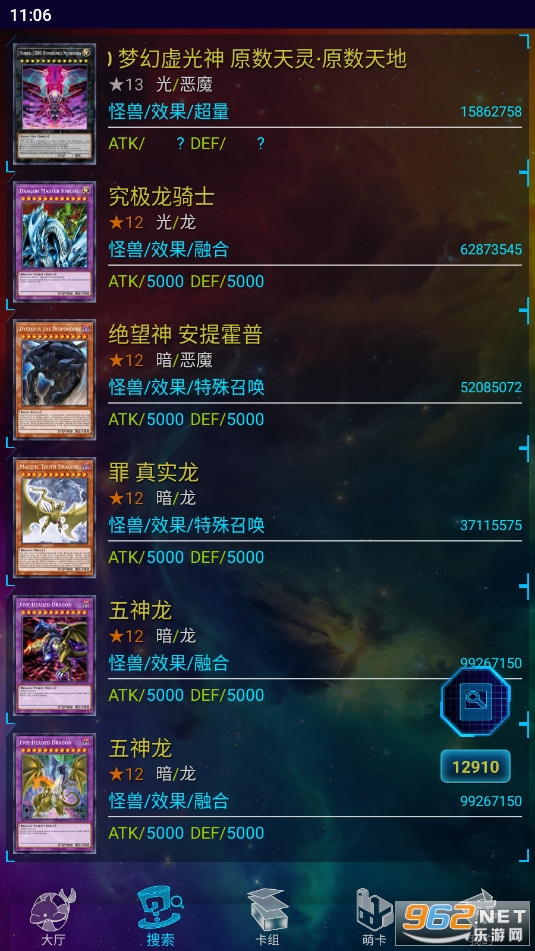 在海量卡池中编辑卡组。还有各种限制牌桌可供选择。通过文本、事实或名称搜索卡片可以使您的卡片搜索速度更快。