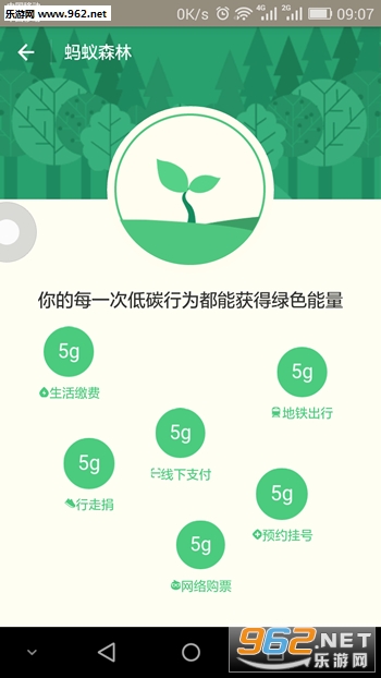为了鼓励用户使用,设计成带有趣味性的“蚂蚁森林”游戏,即用户的步行、地铁出行、在线缴纳水电煤气费、网上缴纳交通罚单、网络挂号、网络购票等等行为,都会减少相应量的碳排放,从而可以在支付宝内种养一棵虚拟的树。