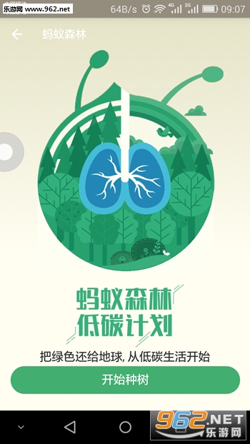 打开支付宝账号,就能看到一个“领树苗”的绿色小提示,点进去,页面就出现了【蚂蚁森林】的提示。
