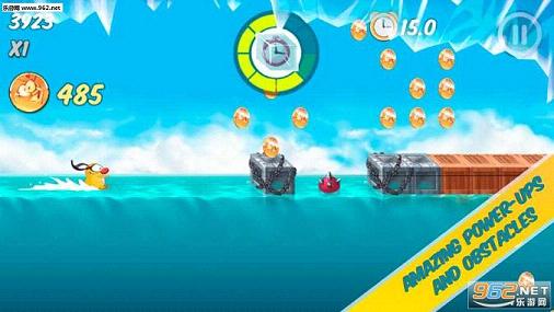 玩家在游戏中要帮助小狗伍迪在海面上冲浪,通过跳跃、旋转、潜水等动作获得花式冲浪的冠军头衔。玩家在游戏中不仅仅要在海面上奋力向前,还要一边躲避木板、礁石等陷阱,一边收集金币。玩家可以使用金币来购买道具帮助自己完成关卡。
