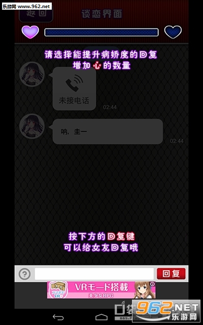 梦幻谈恋中文版是日系奇葩类恋爱养成手游,游戏的玩法就是轻松的点击文字对话类型,也有更多的新奇元素,游戏趣味十足,而主人公是一位十分病娇的妹纸,各种惊险的剧情不断发生!