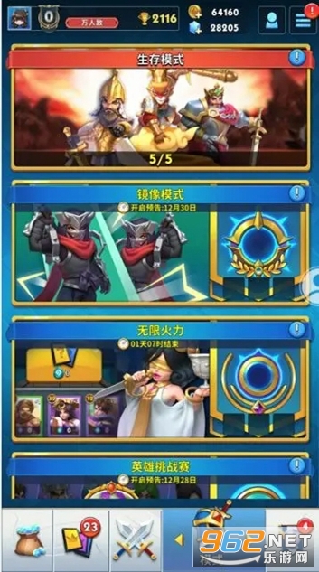 游戏中的活动中心有许多丰厚的福利活动,这里主要推荐新人嘉年华、开服大赏、赛季签到,新手玩家可以通过这三个活动获得金币、钻石,除此之外还能在这里获得随机英雄卡开出传说英雄,零氪金的小伙伴一定要记得参与哦~