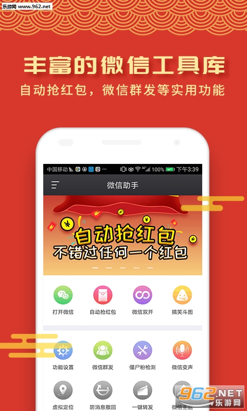 《抢红包群发助手》是一款集抢红包,自动抢红包,群发,僵尸粉清理,变声,斗图表情包,双开多开等多功能为一体的神器!被权威媒体评为9亿用户必装App;2026年十大实用APP之一!