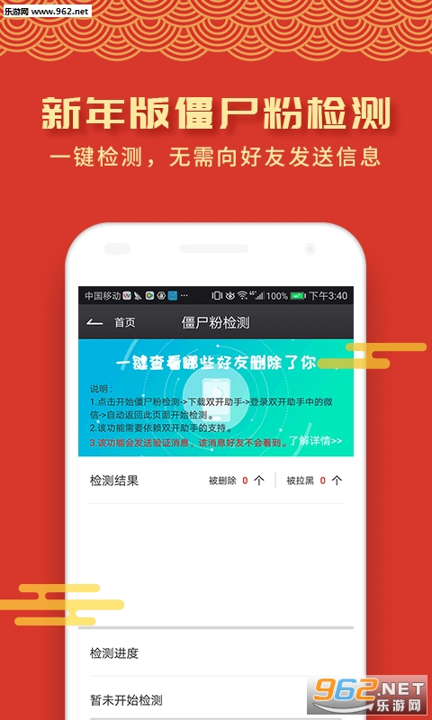 抢红包群发助手一键检测僵尸粉,快速知道哪些好友删除了自己,再也无需群发消息验证,让联系人清理变得更简单直接。