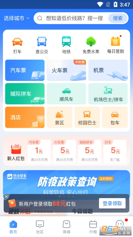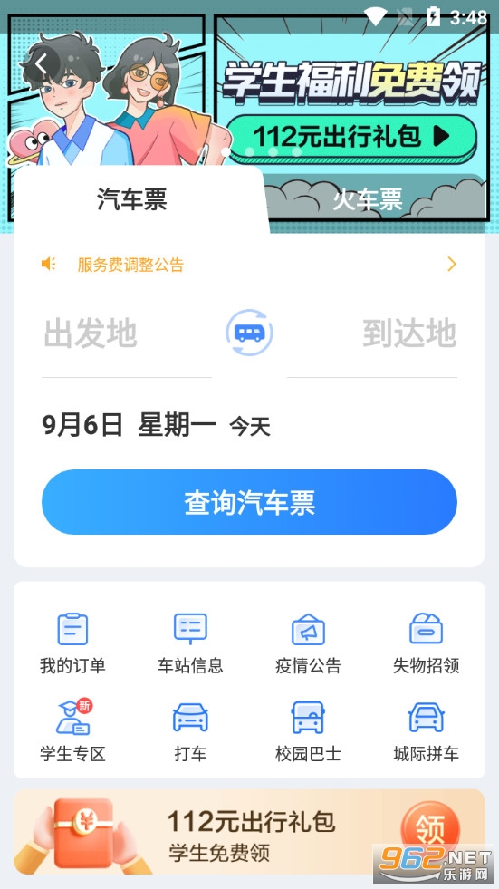 汽车票:随时随地预订汽车票,无需排队,在线退票有保障