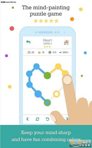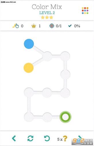 《水彩 Watercolors》是一款有创意的休闲游戏,游戏中要求玩家划线将不同的两点连接起来,而划出的线条必须在方格内给出的路径中进行选择。每个格子还会带出不同颜色,游戏的机制还要求玩家在解谜的同时混合各种颜色创作出新的图形。比如,做出游戏要求的绿色,玩家需要混合黄色和蓝色。