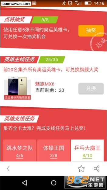 在这次活动中,不仅有主线任务还有支线任务存在,需要用户去收集相应的英雄才会获得奖品。而且可以用任意5张英雄卡抽奖,奖品有其他的英雄卡,小编抽到过一次天猫优惠券。