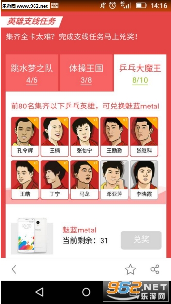 如上所示,当你的英雄卡全部都集满的时候,可以兑换魅蓝metal手机一部,而且有支线任务,奖品分别是:魅族充电宝一个、魅族无线耳机一部、魅蓝手机一部。