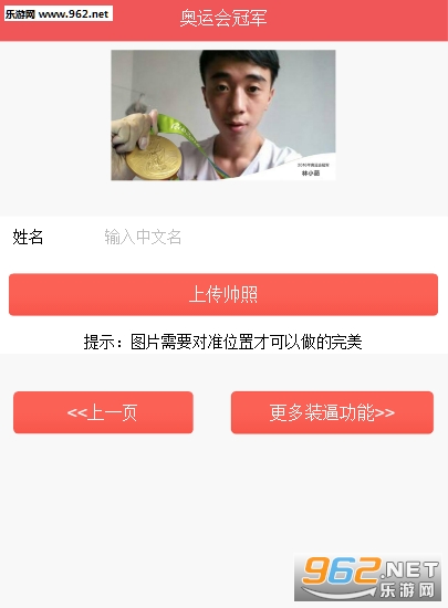 我是奥运会冠军生成器是一款装X应用,使用这款APP可以在线进行奥运会冠军图片生成,可以帮助广大用户在奥运会期间,在朋友圈中引领潮流的同时与大家分享一下奥运相关的有趣事物,软件使用方法十分简单,就是个人图片选取要规范一些。