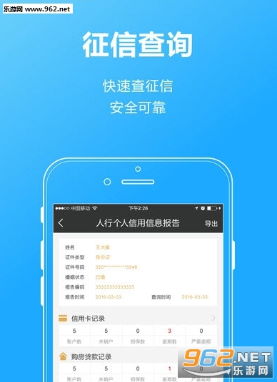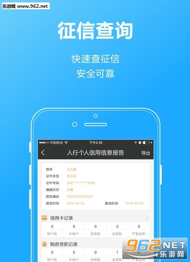 1.人行个人征信、社保、公积金查询:用户可随时通过手机查看报告。