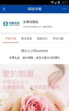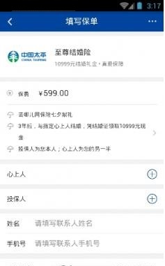 第二种为至尊结婚险,也就是结婚险的升级版,保费更高,所领取的结婚基金也随之增多。至尊结婚险的保费为599元,其享受的责任与保障为三年后结婚可获得10999元的结婚礼金与保额为10000元的人身意外险。究竟怎么样还是需要时间去检验哦!