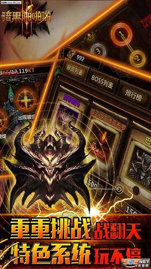 人物装备真实呈现,还您一个原汁原味的暗黑世界! 超爽的战斗体验,全屏特效绚丽展开,虐杀经典BOSS,寻找记忆中的战斗场面!超快的成长体系,不再需要为练级而烦恼。多样独创的培养系统,创造全新的游戏节奏体验。