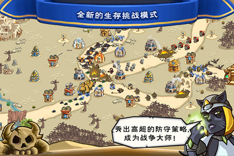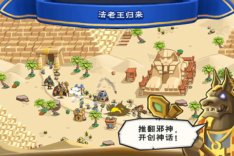 沙漠帝国是一款以古埃及为背景素材的经营塔防手游,游戏中玩家将化身法老,拥有一座在沙漠中的庞大国家,你需要不断经营,建设自己的国家,同时为了抵抗邪神的进攻建造大量的防御工事,超多各具功能的防御塔需要你配合使用。