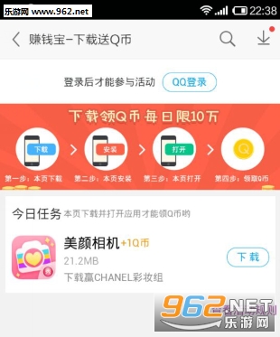 进入活动后就可以看到下载应用领取Q币了 一个应用是1Q币