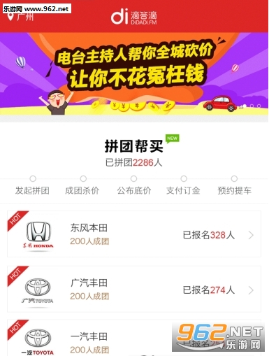 滴答滴app(拼团买车)是中国首个由电台主持人帮用户砍价的购车平台。在这里用户可以选择认定的车辆,然后点击拼团,这样就可以实现与其他人一起实现拼团买车的服务。在这里提供了便捷的汽车杀价服务,让用户都能够以低价购买的汽车。