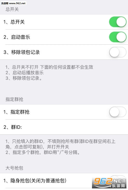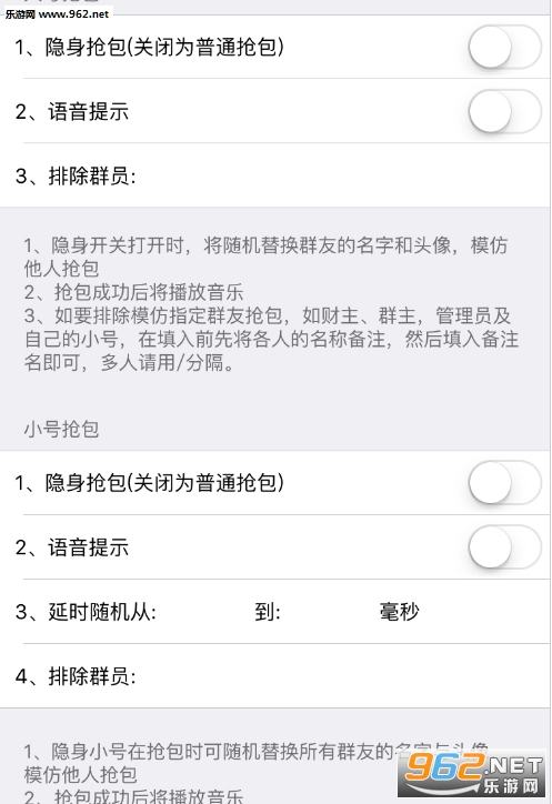 4~9功能解释:必须开启小号抢包(偷包),然后再设置4~9功能,方可使用。