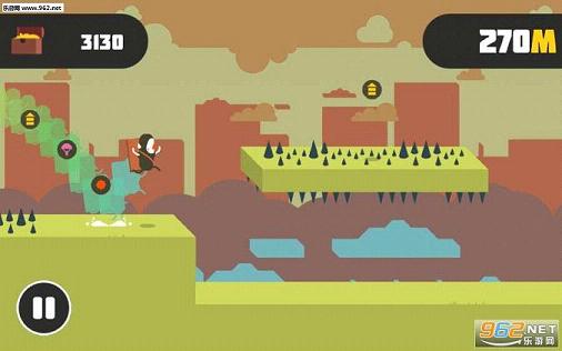 面对大的沟壑怎么办,二段跳不是那么好跳过的。点击屏幕长按达到一个高度之后,然后我们再次快速的点击跳跃,这样就可以激活二段跳了,稍微手慢就跳不过去了。