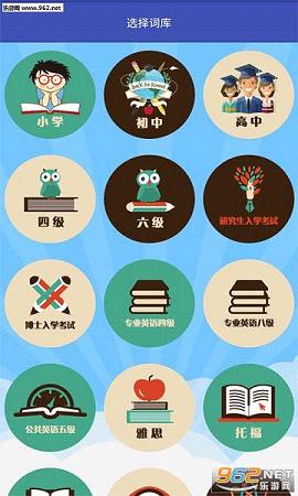 一款不错的英语学习软件,软件中有着小学到大学,四级到雅思托福等大量的英语词汇,小伙伴们可以利用本款软件学习一下。